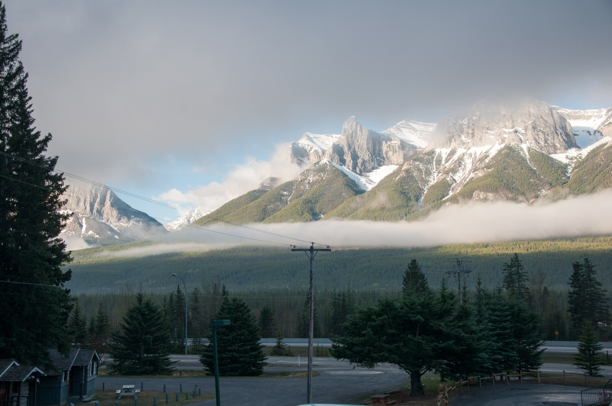 Für Banff ist unsere Nummer 1 Unternehmung, um den Lake Minnewanka zu radeln. Das haben wir uns schon in Deutschland ausgeschaut. Leider sind wir nicht so weit gekommen, wo wir Mountainbikes leihen können. Direkt am See wäre toll, nachdem wir die ja nicht transportieren können. So groß ist unser Auto auch nicht. In der Touristeninfo/Parkinfo bekommen wir schließlich heraus, dass wir nur direkt in Banff leihen können. Der beliebteste ist nur 2 Blocks entfernt, neben dem Kino. Unsere Pläne für die nächsten Tage gehen allerdings nicht auf. Am Lake Louise sind die Tea Houses noch nicht geöffnet und die Straße zum Moraine Lake ist tatsächlich gesperrt. Wir sollten aber in Lake Louise selbst nochmal nachfragen.