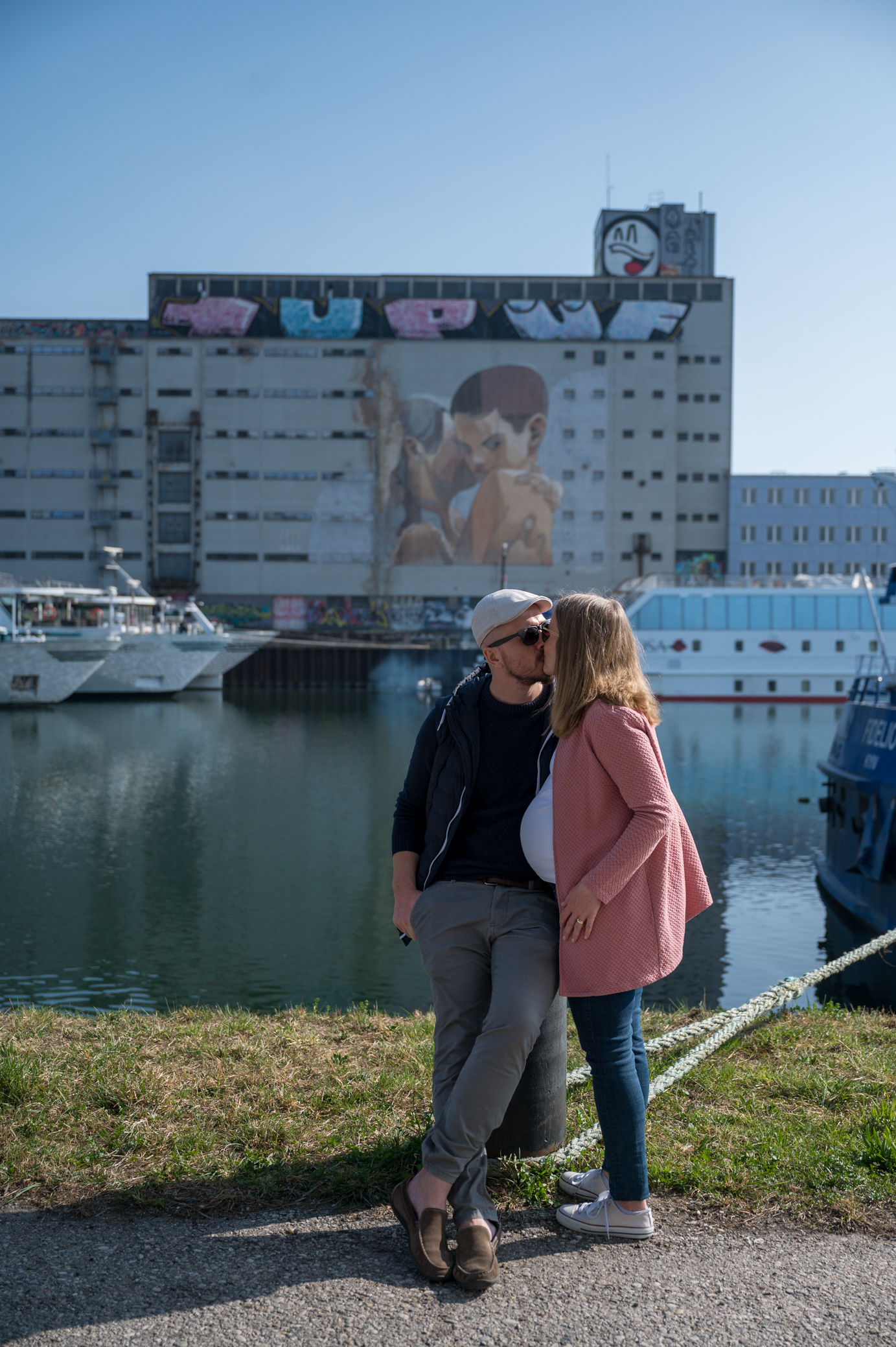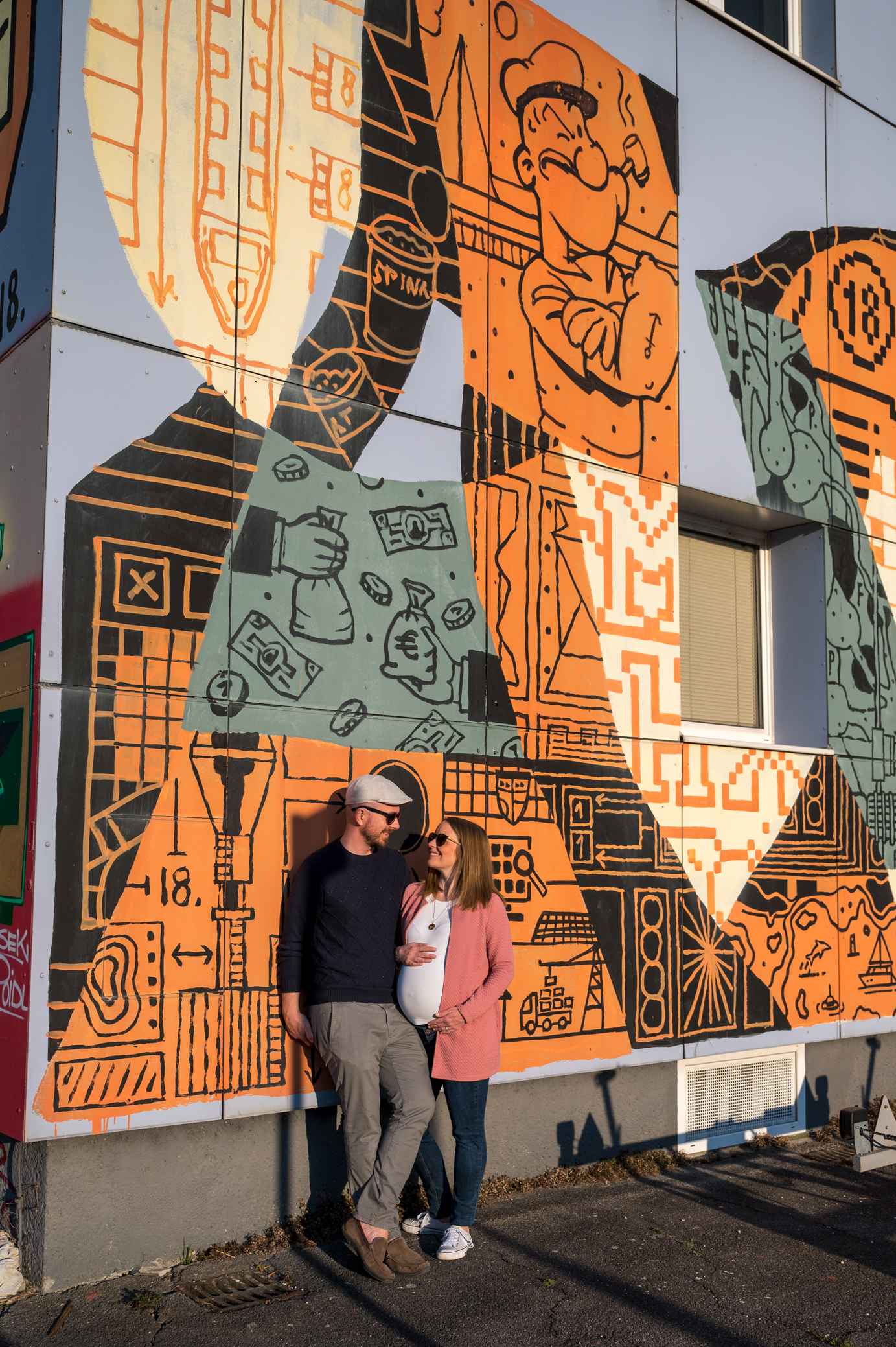 Für unser Babybauch-Shooting haben wir uns den Mural Harbour in Linz ausgesucht. Die Fotos haben wir selbst mit Stativ und Nikon Handy App gemacht.